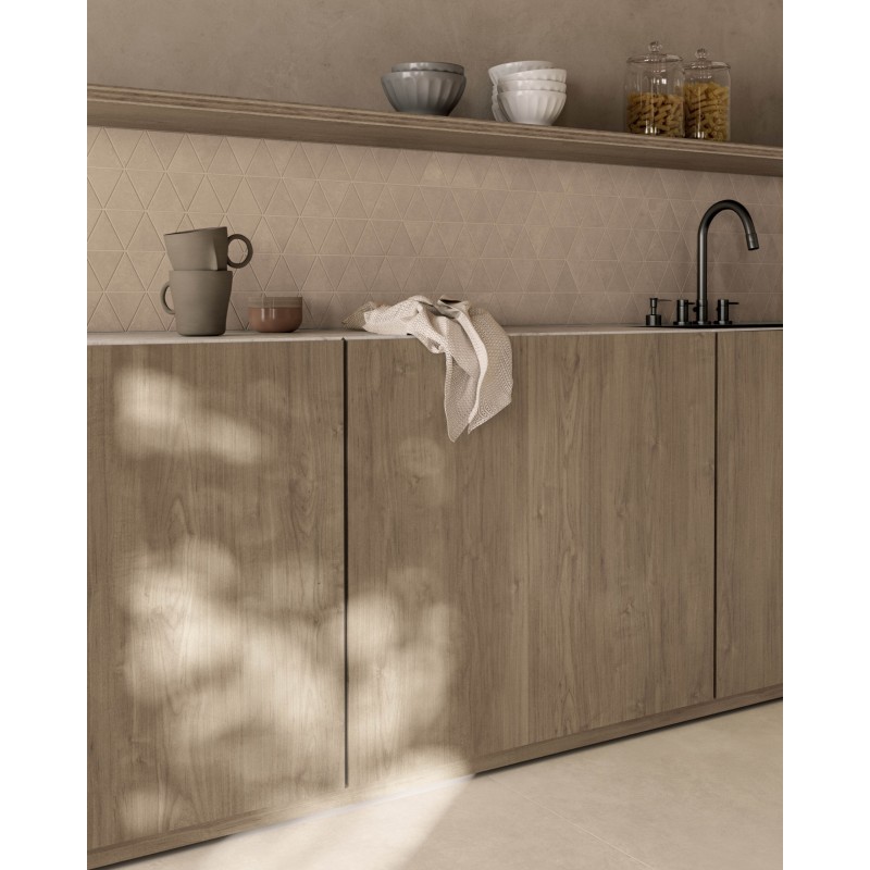 La tonalità neutra e la texture naturale richiamano il design di pietra, rendendolo ideale per un contesto elegante e contemporaneo.